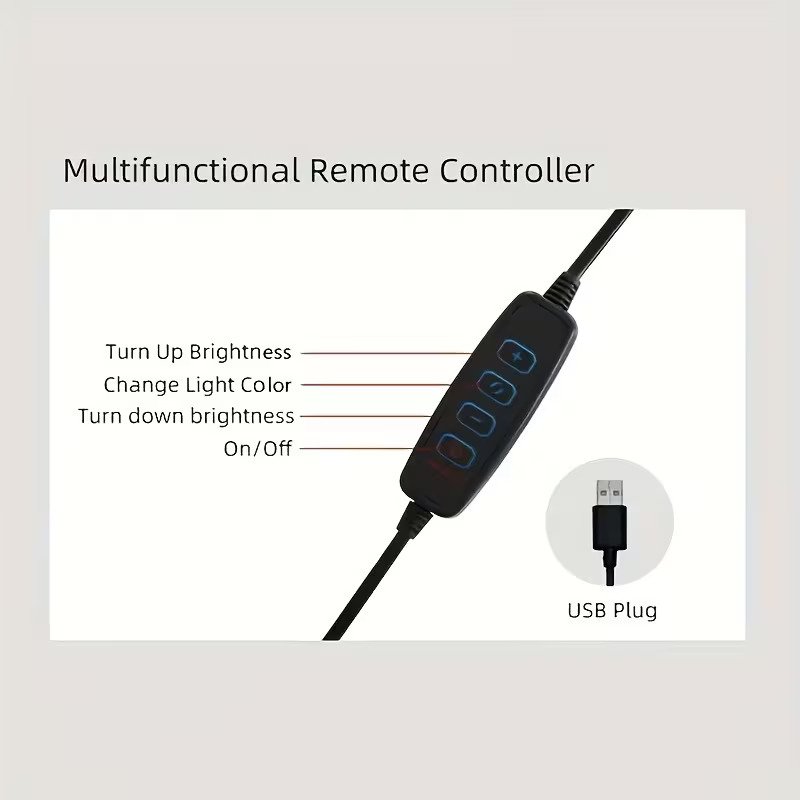 Illuminate your content with this 10-inch LED panel, complete with a 43-inch adjustable tripod stand. Powered via USB, it delivers versatile lighting in a lightweight PP-material build. Choose from 3 color temperatures and fine-tune with 10 brightness levels — perfect for photography, live streaming, or setting up a mini photo studio. A compact, flexible solution to make your shots look pro.